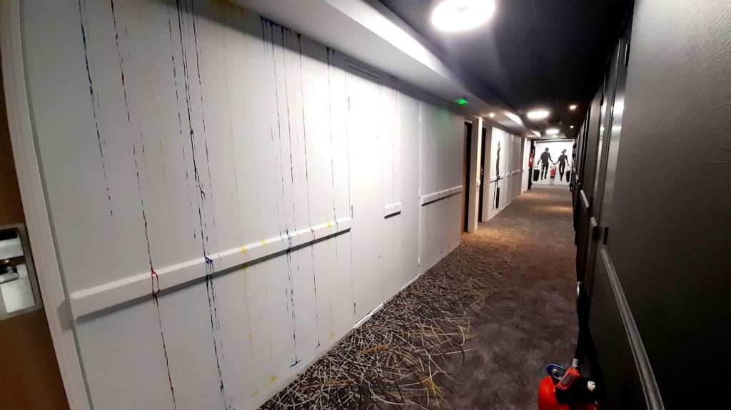 L’entreprise est intervenue au printemps 2023 à l’hôtel Ibis Styles de Brive la Gaillarde afin de participer à sa rénovation. Pour cette première partie, Passion Déco a procédé à la décoration du couloir du 2ème étage, de la création d’un visuel digital qui a été ensuite collé dans sur les murs des chambres.